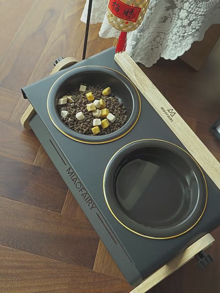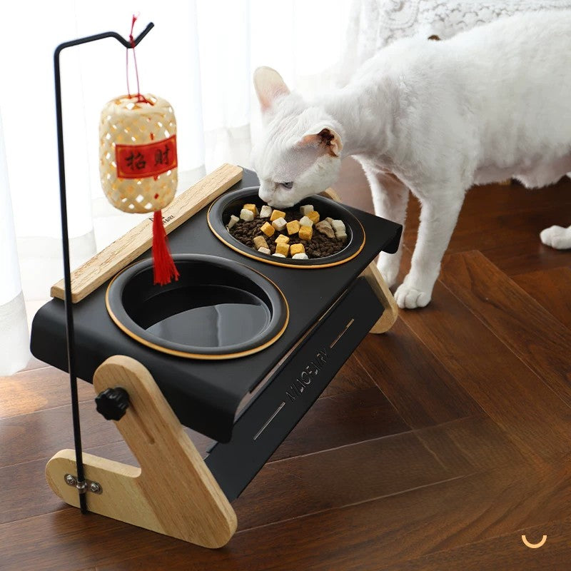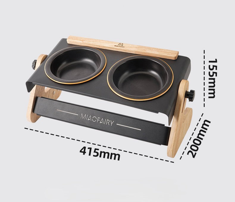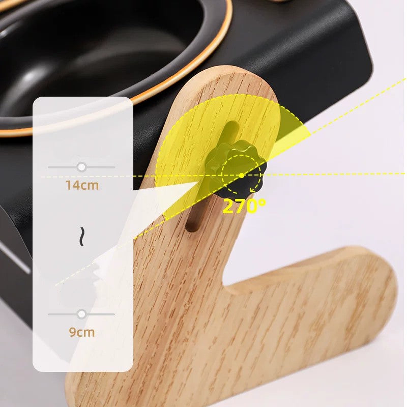 Solid Wood Stand Double Elevated Ceramic Pet Bowl
